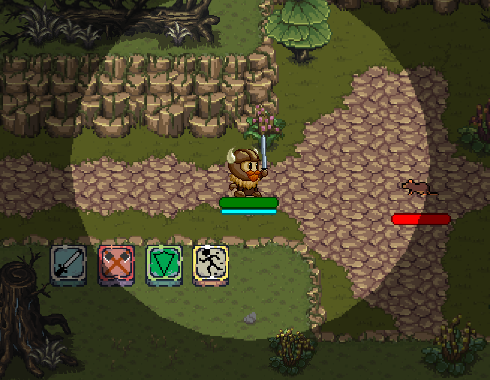 ( light attack, heavy attack, defend (replenish stamina), run away)